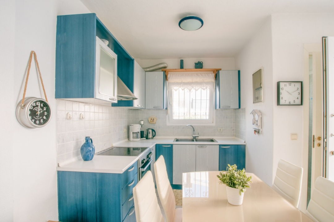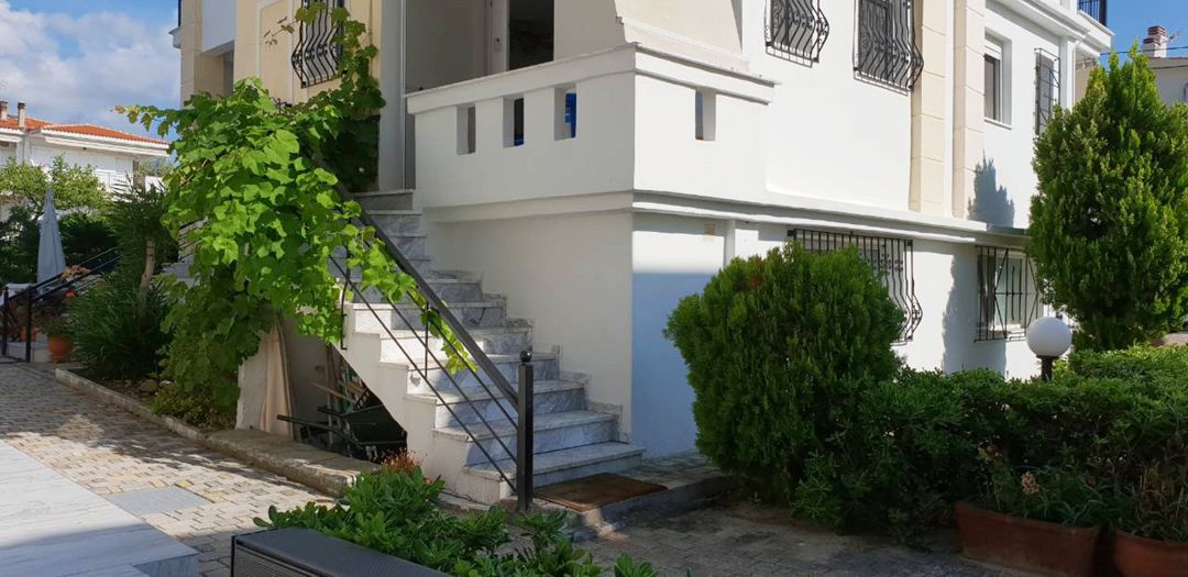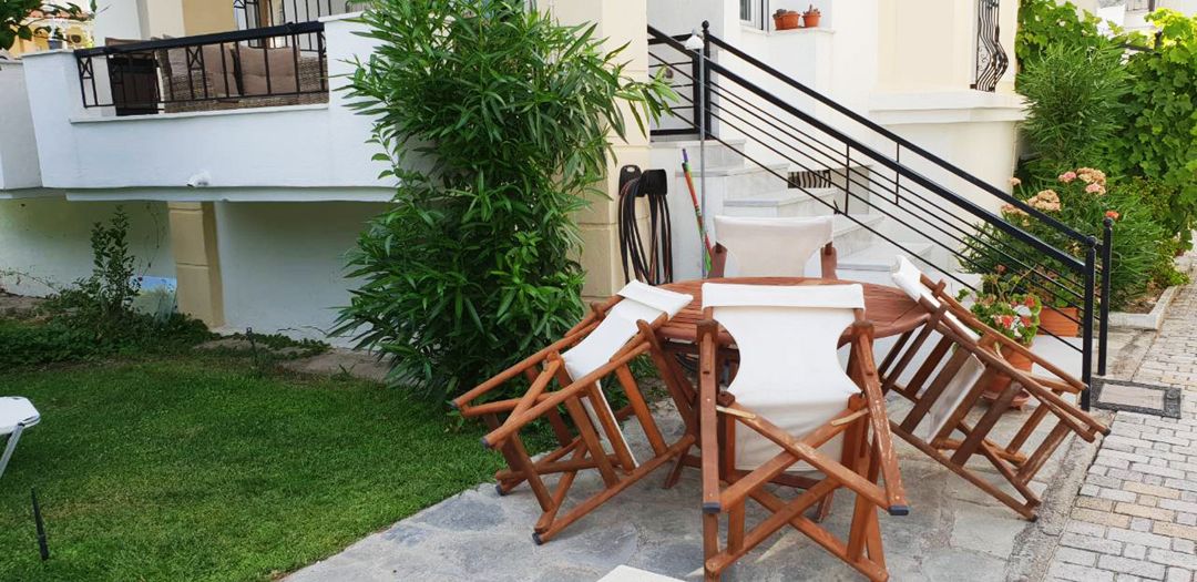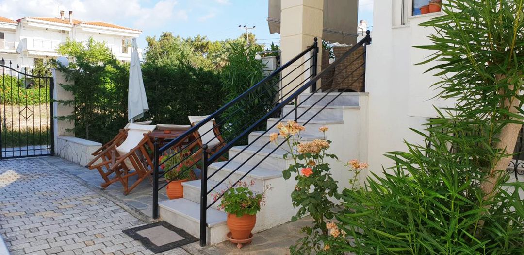 Cozy holiday house Vivien with 4 bedrooms and a small garden, just 70 meters from the sandy beach, on the Kassandra peninsula, Halkidiki for rent.