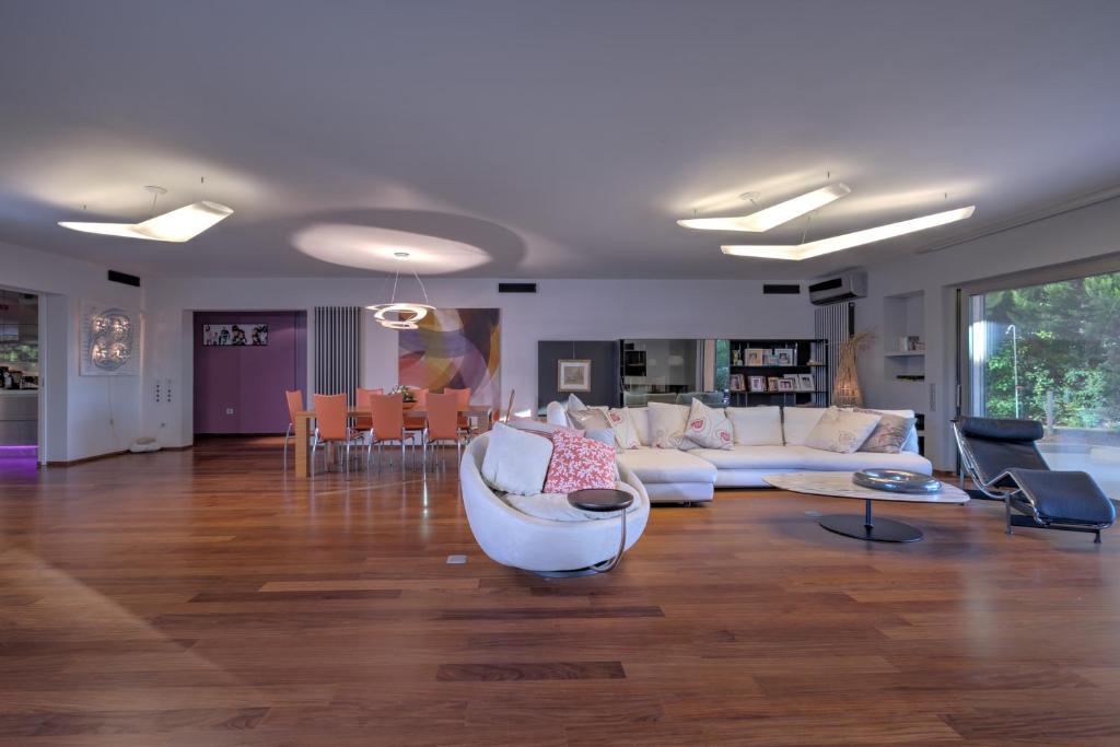 A contemporary and minimalist design accentuates the sheer amount of space within while large windows allow you to thoroughly enjoy relaxing indoors or outdoors. If you can wake up early enough, the sunrises from this terrace are breathtaking. The layout of the home means it is well suited to families or groups of friends alike.