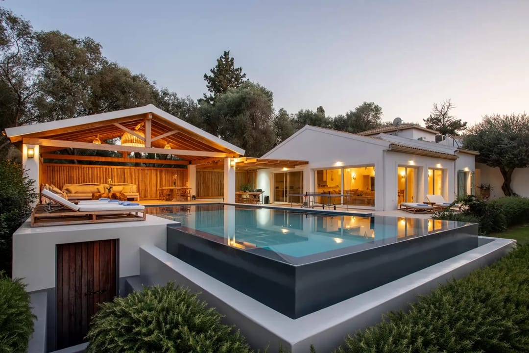 Stylish, comfortable, nature living Zami Villa with 4 bedrooms and a private pool, just a few steps from the beach on the Corfu island for rent.
