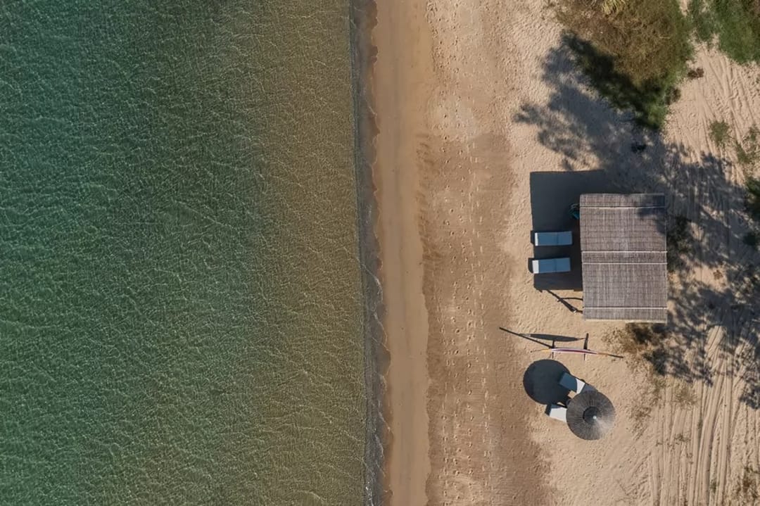 Each villa has an exclusive part of the shared beach, its own gazebo, umbrellas, and sunbeds. The gently sloping sandy bottom is nice and safe for everyone. The shallow water makes it the best choice for families with children.
