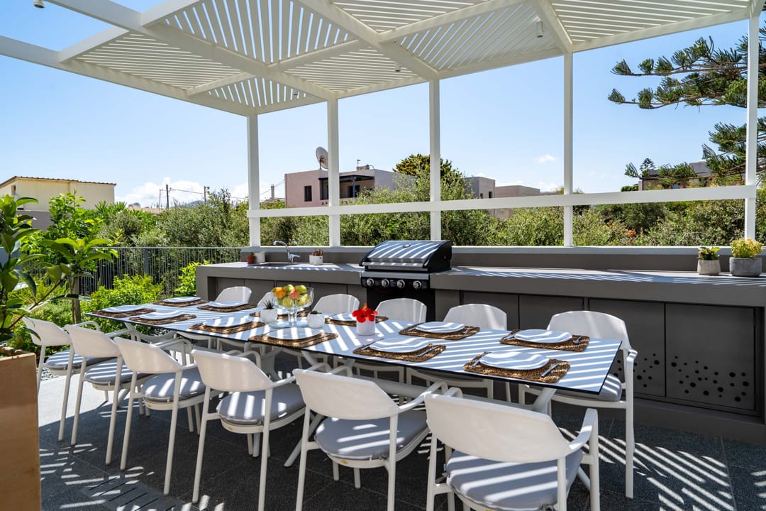 - 2 outdoor dining tables for 16 under 2 shaded pergolas, provide all essentials for al fresco dining