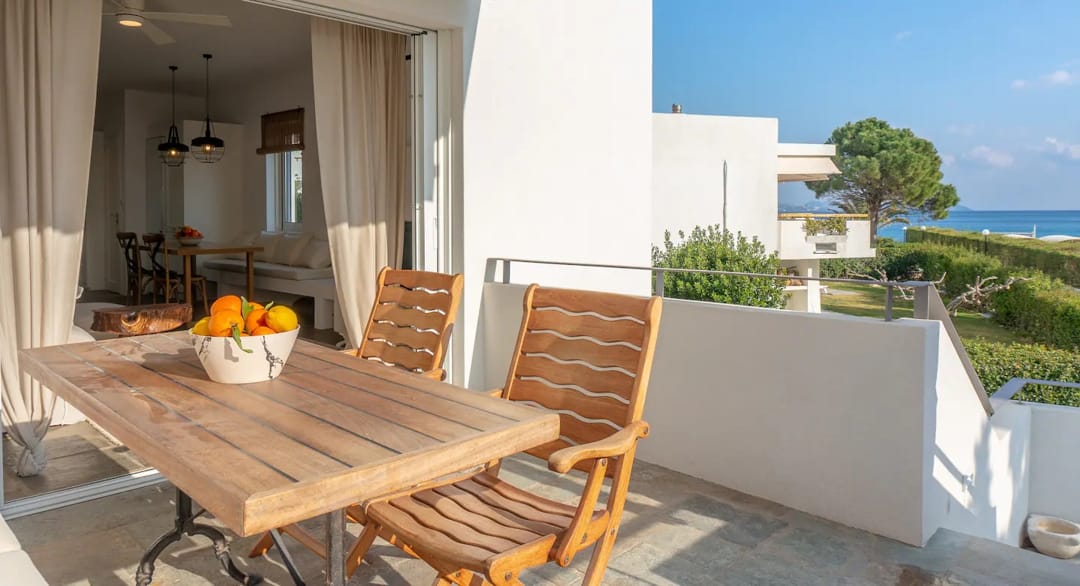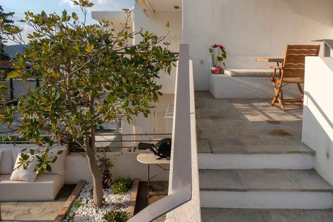 The new stylish holiday house Zoi with 3 bedrooms and a private yard, is located right by the seaside in the Agios Dimitrios, Lagonissi area of the Athens Riviera for rent.