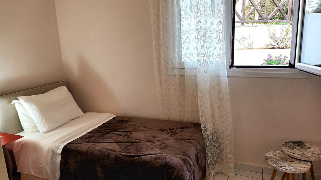 Комфортабельный апартамент “Алиса” с 2 спальнями и садиком, всего в 70 метрах от пляжа, на восточном побережье региона Аттика, в часе езды от центра города Афины, в аренду.