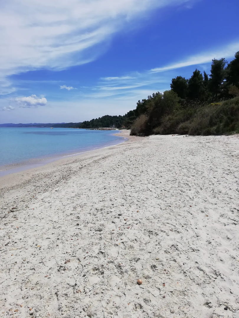 Дом расположена в комплексе, в окружении сосен, с красивым видом на Эгейское море и залив Торонеос, всего в 200 метрах от шикарного песчаного пляжа. В 2 км от виллы находится самый оживленный курортный городок Каллифея с большим количеством магазинов, ресторанов, баров.