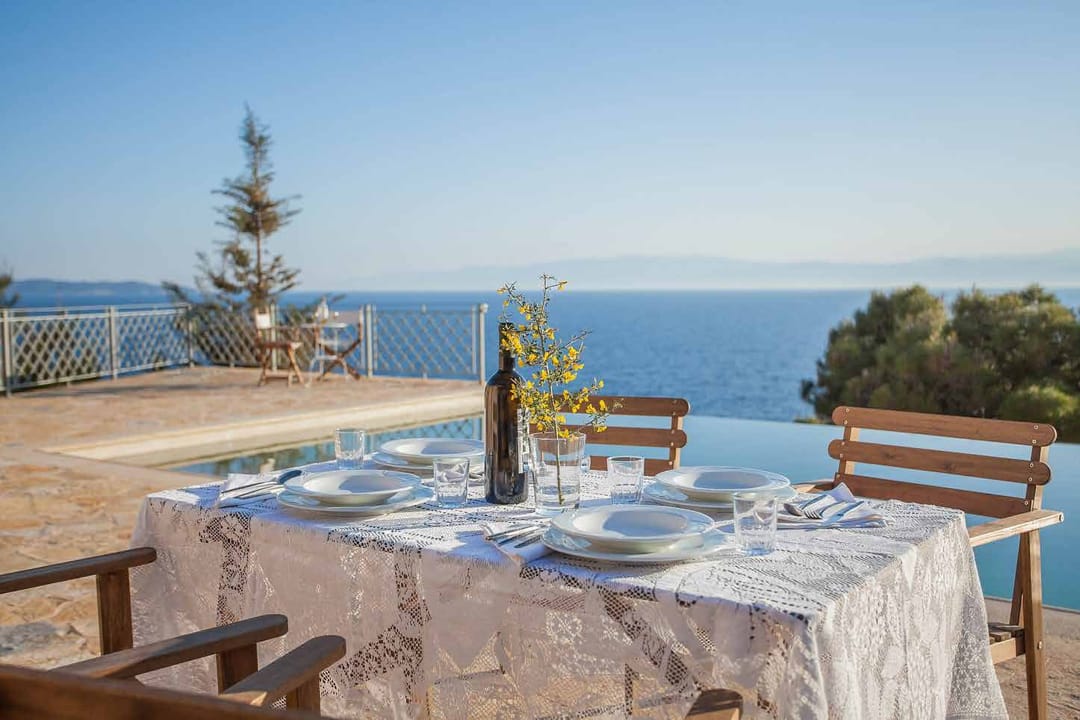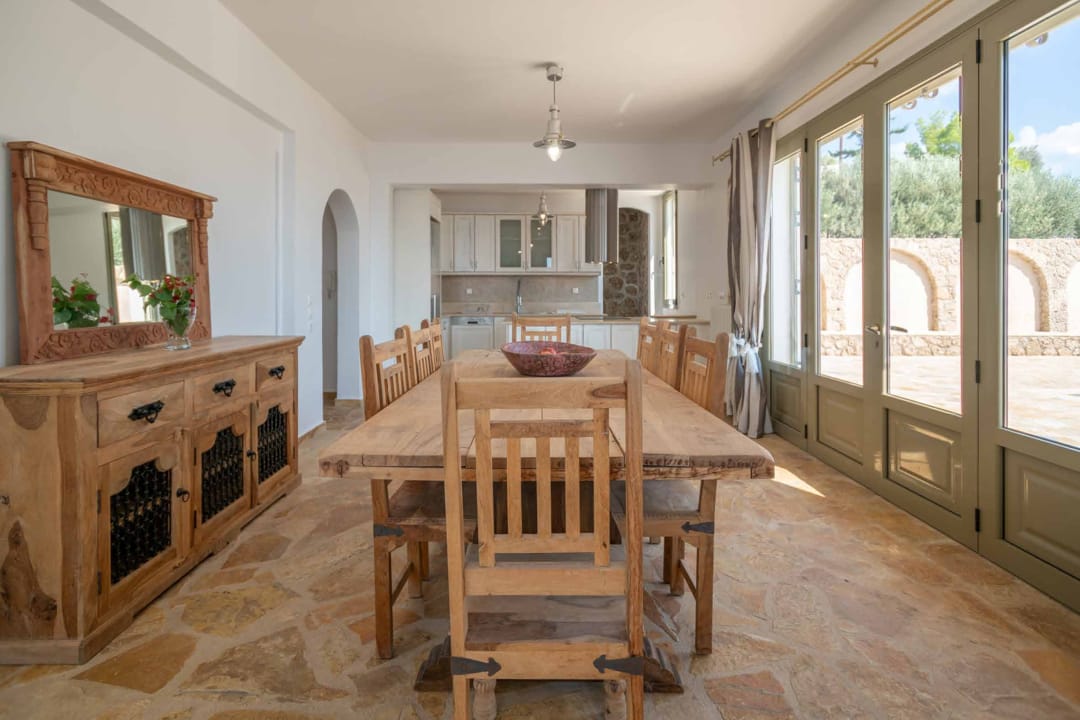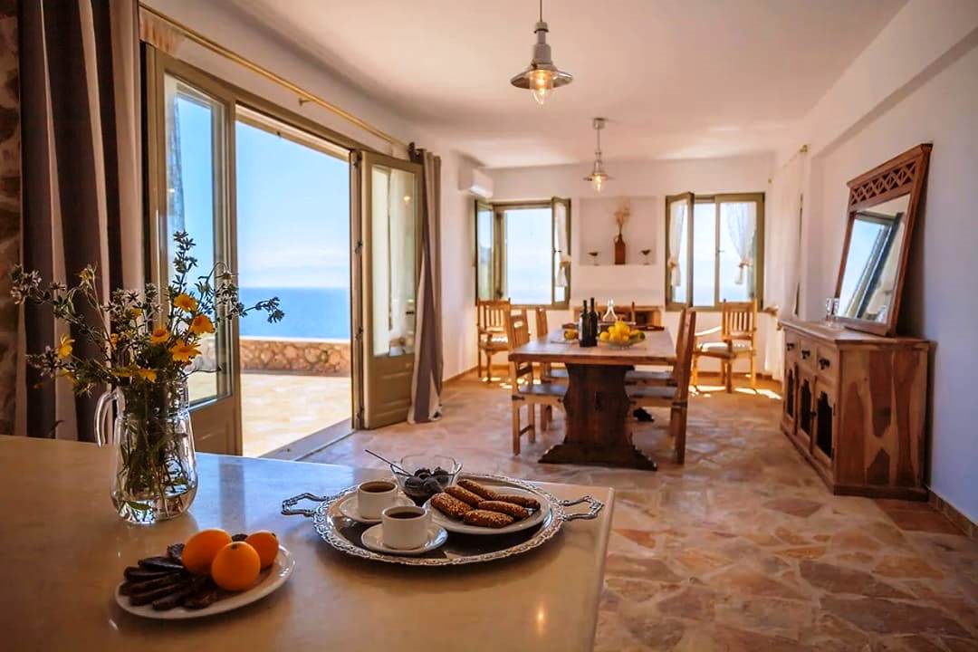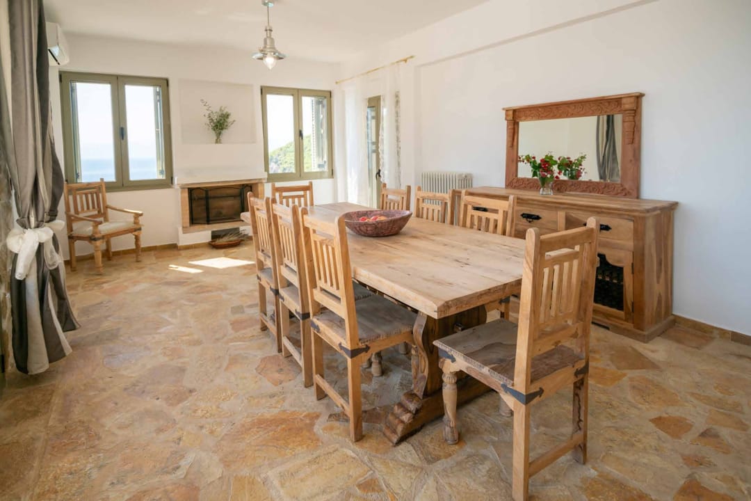 Дизайн виллы выполнен в традиционном стиле этого региона с использованием натуральных материалов, которые прекрасно сочетаются с окружающей средой. Интерьеры украшены мебелью и предметами ручной работы. Неповторимая аура виллы позволяет гостям расслабиться и насладиться уникальным видом на Эгейское море, близлежащие острова и пышный сосновый лес. Просторные гостиные с большими обеденными зонами и удобными диванами создают идеальную атмосферу для проведения отпуска с близкими людьми.