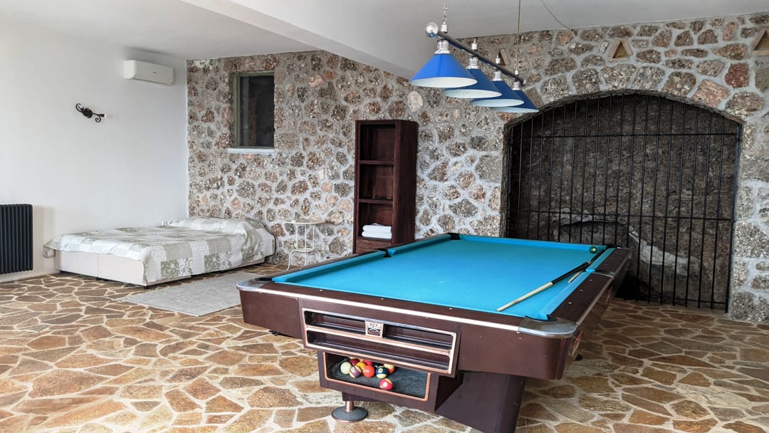 - Большая комната открытой планировки с бильярдным столом, офисной зоной и возможностью установки дополнительной двуспальной кровати