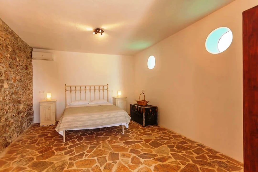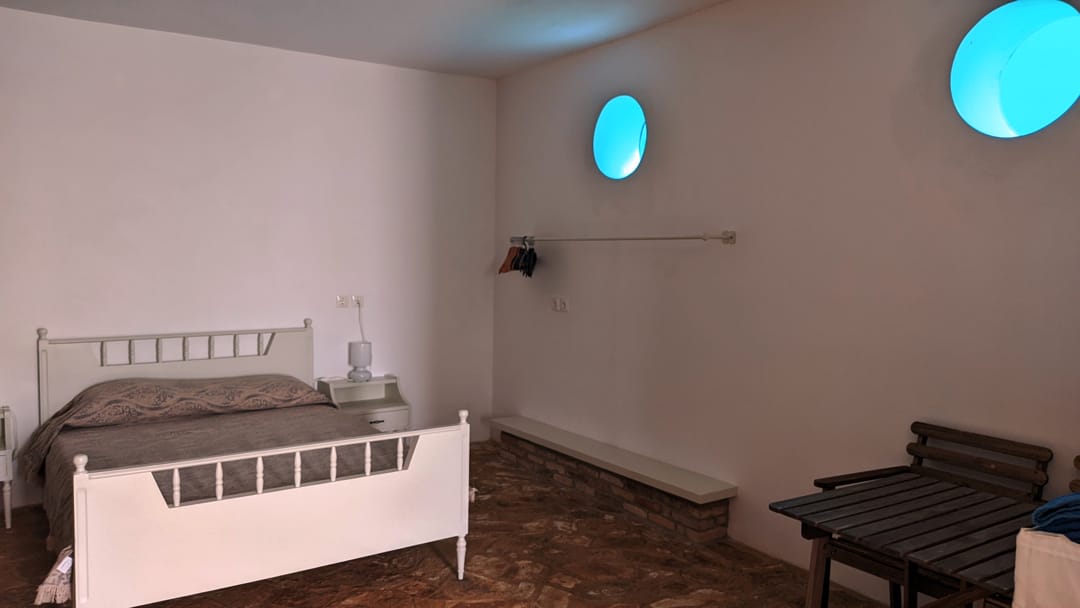 - 4-я спальня с двуспальной кроватью и окнами-иллюминаторами в бассейн