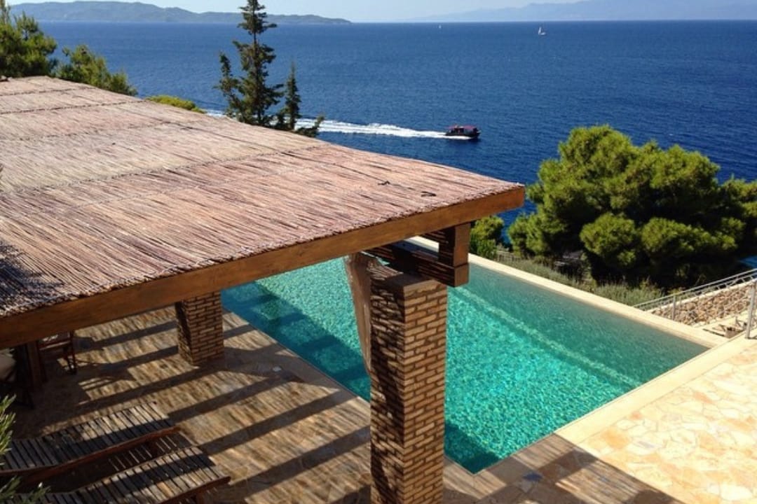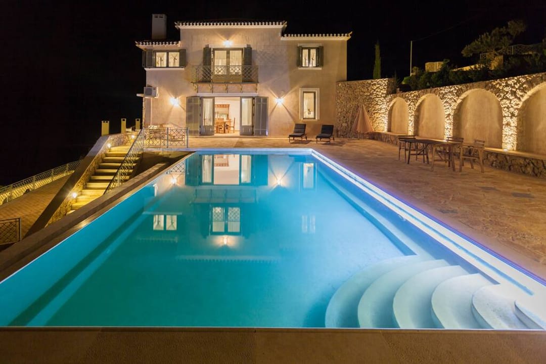 Великолепная вилла «Азалея» с 4 спальнями и инфинити-бассейном с видом на море, всего в нескольких шагах от пляжа, в престижном районе Порто Хели на полуострове Пелопоннес в аренду.