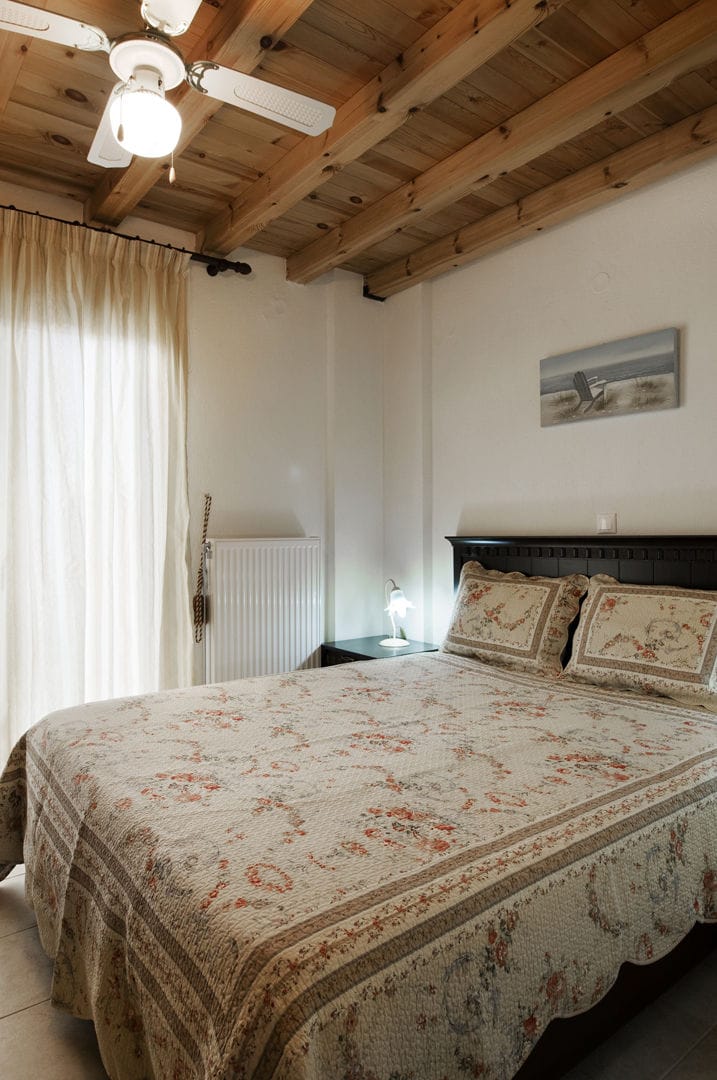 - 1-я спальня с двуспальной кроватью и потолочным вентилятором