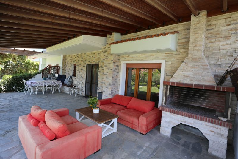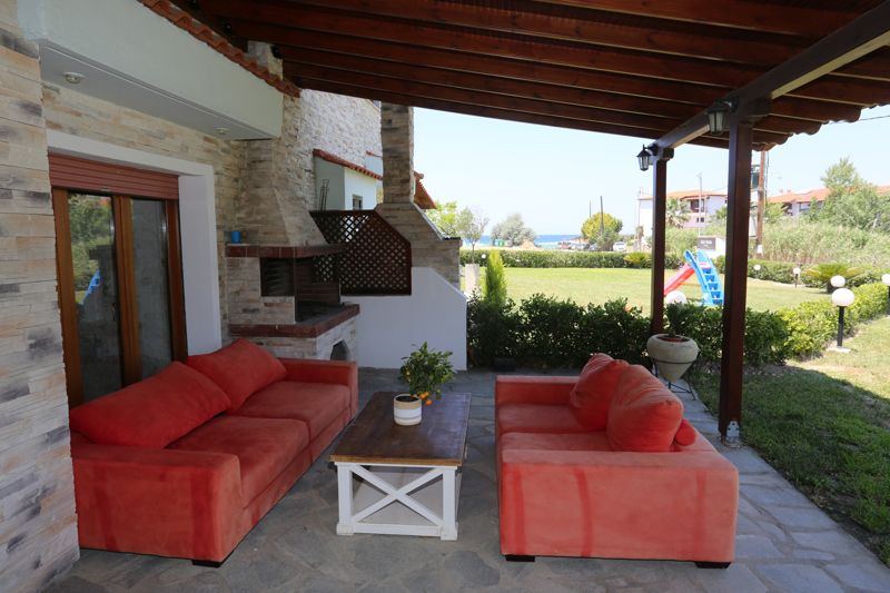 Очаровательный комфортабельный коттедж «Фарос» с 3 спальнями, меблированной террасой, барбекю и частной парковкой, рядом с пляжем и популярным туристическим поселком Фурка на полуострове Кассандра, Халкидики, в аренду.