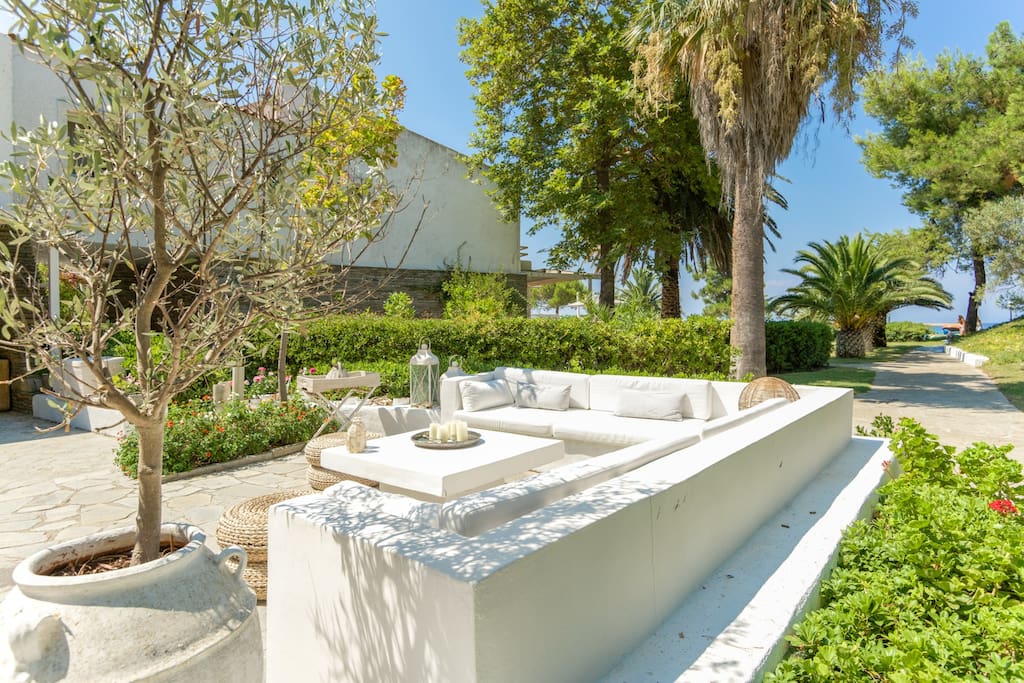 Мы выбрали виллу Флора, которая находится в комплексе с закрытой территорией, со своим пляжем и доступностью к нему в 50 метров. Мы пробыли там месяц и ни разу не пожалели. Для отдыха с детьми прекрасный вариант, есть все необходимое. Огромная ухоженная зеленая территория по всему комплексу. Плюсом было то, что нас разместили с нашим домашним питомцем без проблем, а именно с собакой. Конечно вилла не супер современная, но греческий шарм прослеживается в оформлении и дизайне, то что нам хотелось.