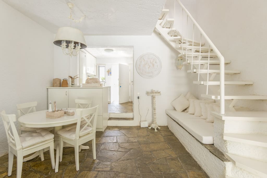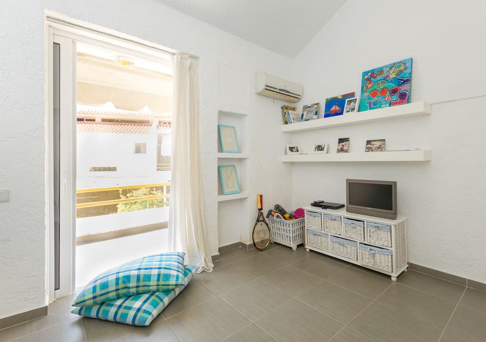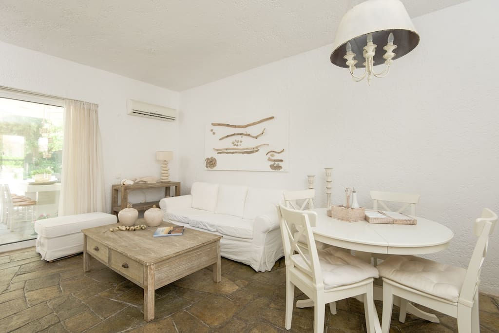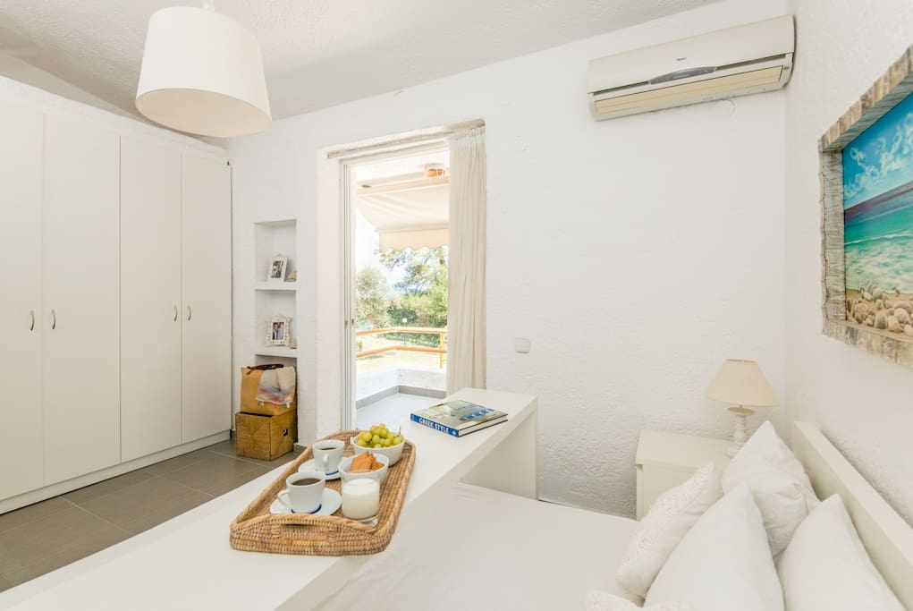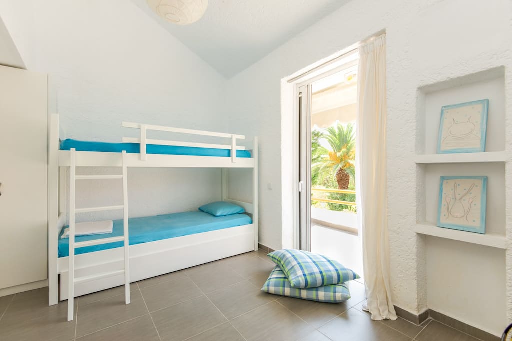 Есть кухня со всем набором утвари, красивая терраса с видом на море, зоной лаундж и обеденная зона с возможностью барбекю. Кондиционеры во всех комнатах, для деток полноценная детская с двухъярусной кроватью. Особенно важно на всех окнах есть шаттерсы, что спасало в жаркие дни.