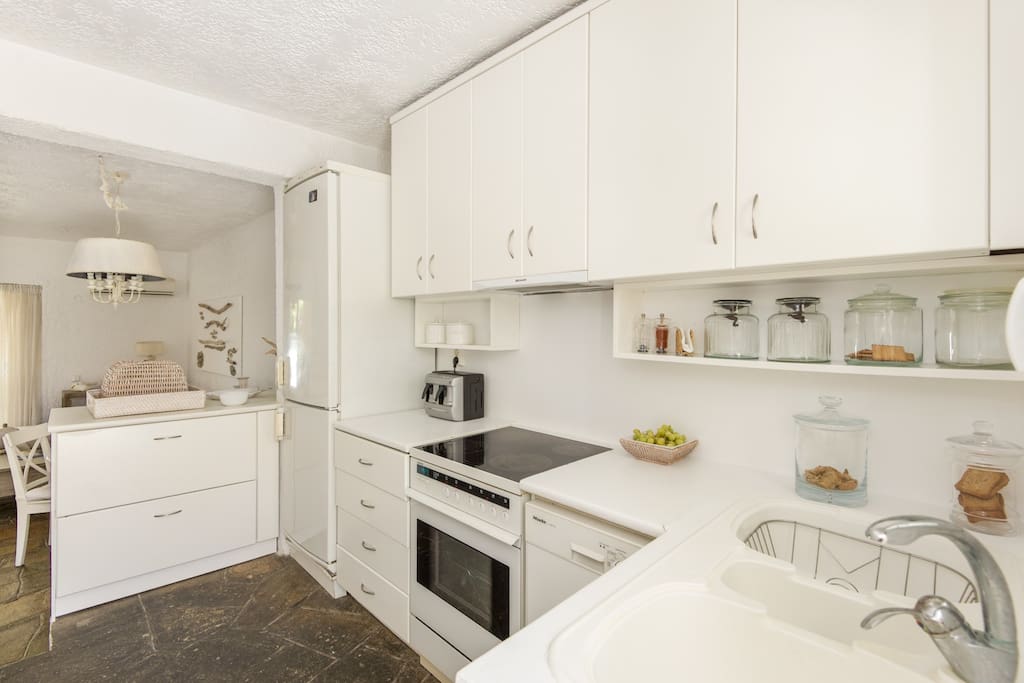- Холодильник с морозильной камерой, плита, духовка, вытяжка, посудомоечная машина, электрический чайник, кофеварка, тостер