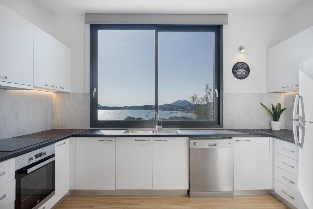- Гостиная с раздвижными дверями и окнами от пола до потолка, с потрясающим видом на море, с Wi-Fi, спутниковым телевидением и кондиционерами