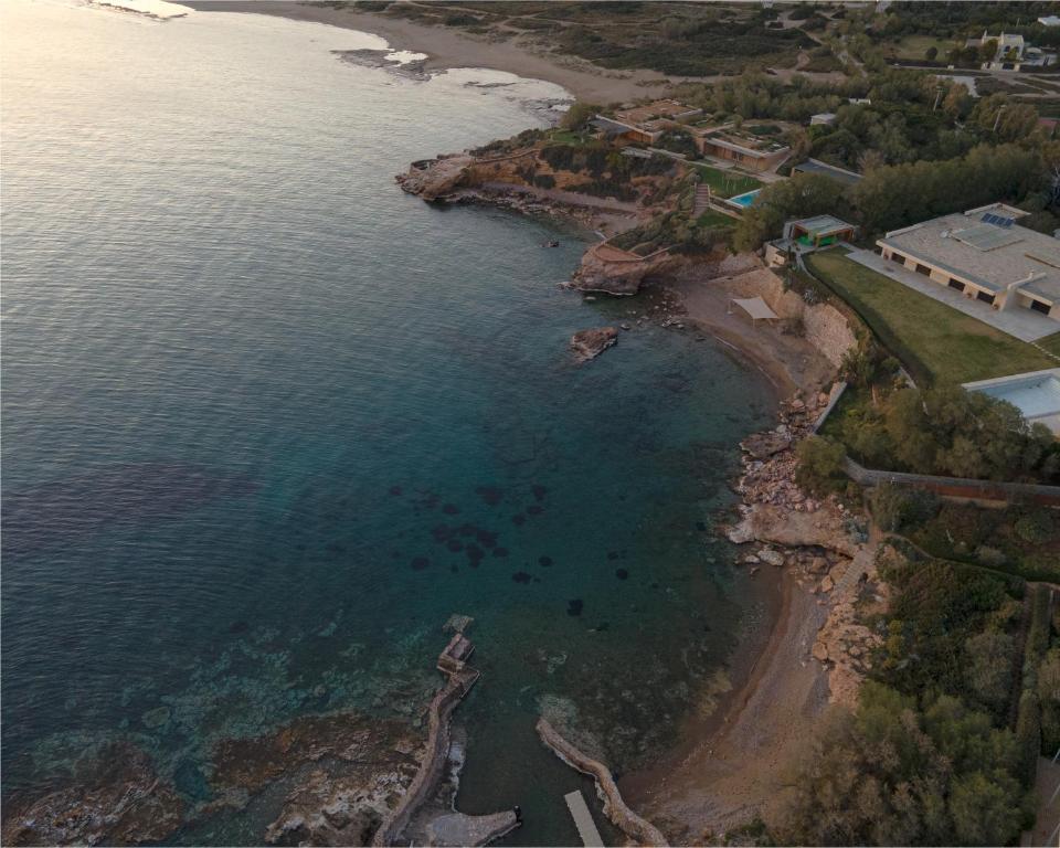 Поселок Легрена расположен на великолепной Афинской Ривьере, недалеко от мыса Сунио, где величественно возвышается античный Храм Посейдона (5 минут езды от виллы). Хотя пляж находится всего нескольких минутах ходьбы от дома, на всем побережье есть множество возможностей для купания; от песчаных организованных пляжей до небольших уютных бухт. В районе есть традиционные греческие таверны. Престижный район Глифада с роскошными магазинами и ресторанами находится в 45 км. Центр Афин находится в часе езды.