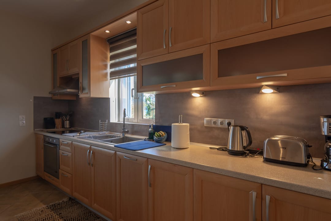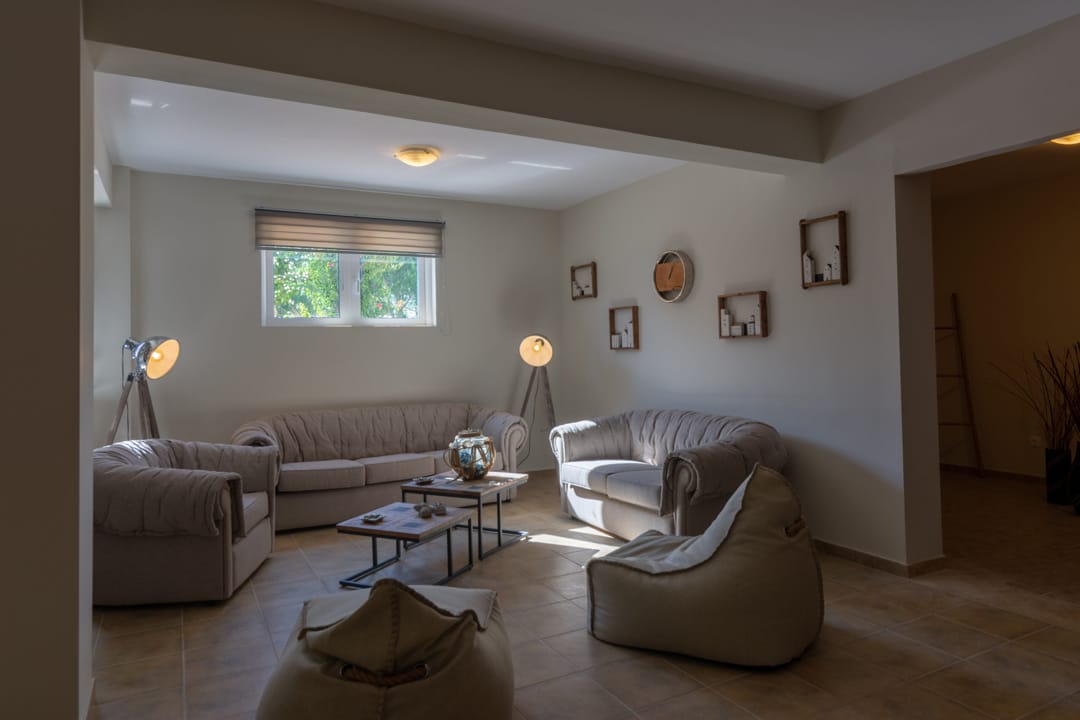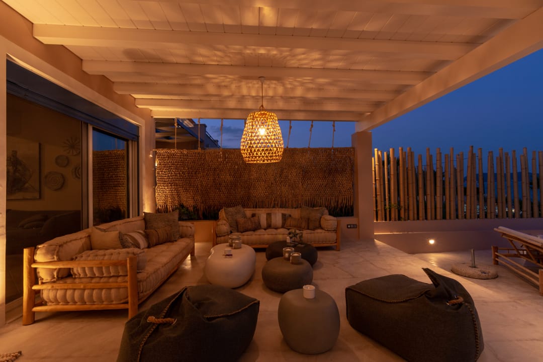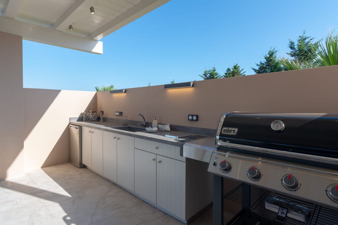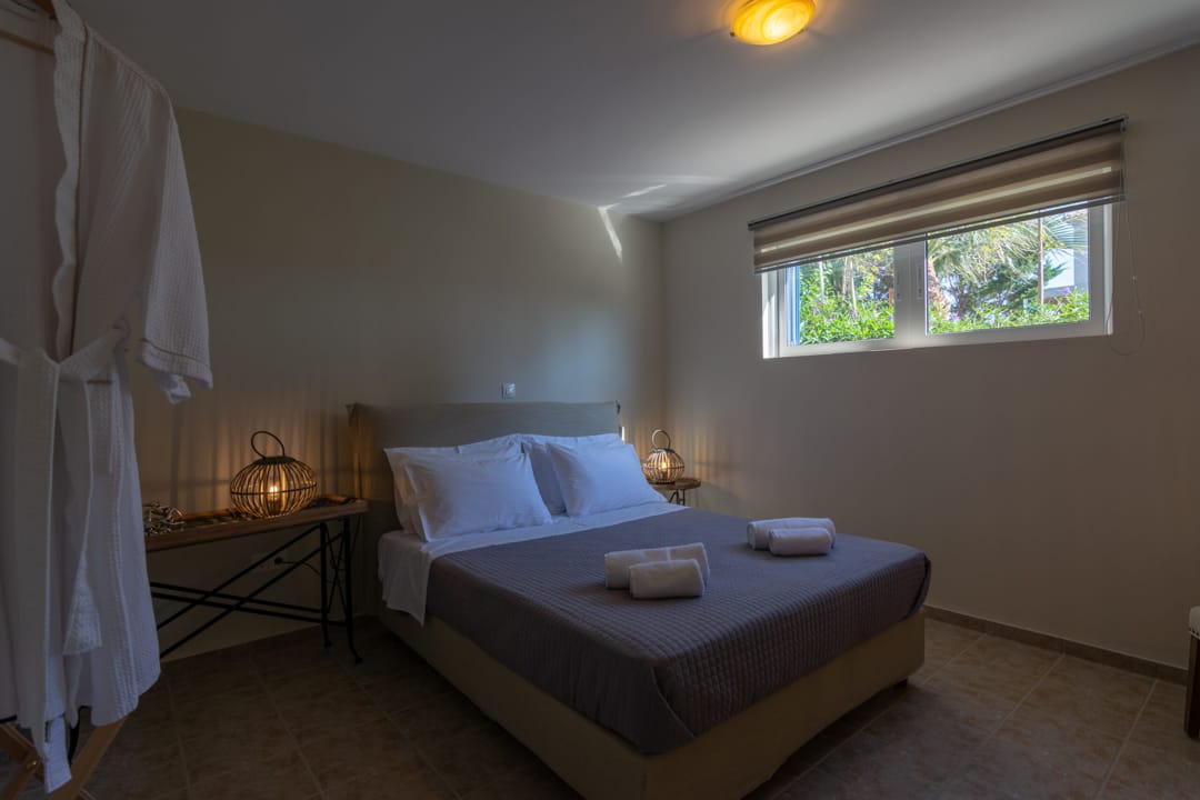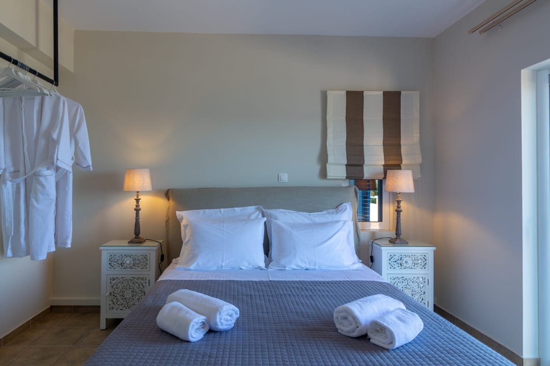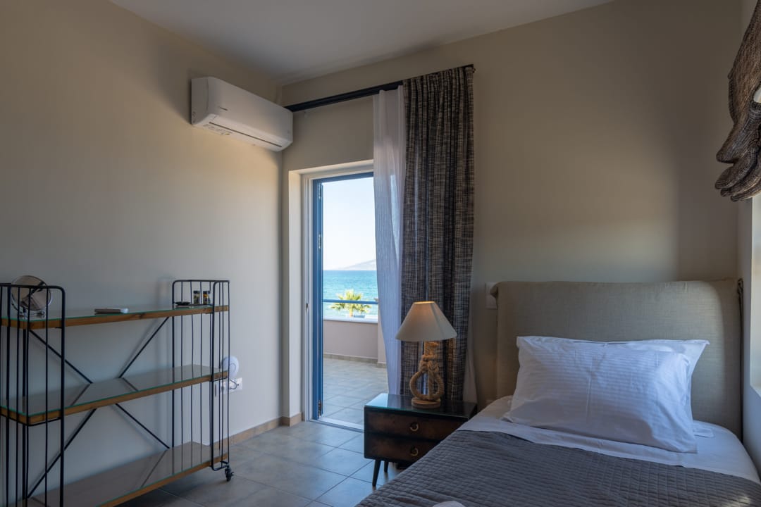 Вилла находится непосредственно на берегу моря, предлагая роскошный и спокойный отдых. Лишь небольшая дорожка отделяет виллу от песчаного пляжа с собственными зонтиками и шезлонгами. Окруженная оливковой рощей и морем, вилла предоставляет гостям живописную обстановку для расслабленного отдыха.