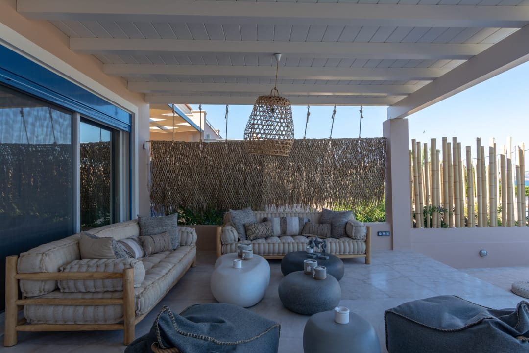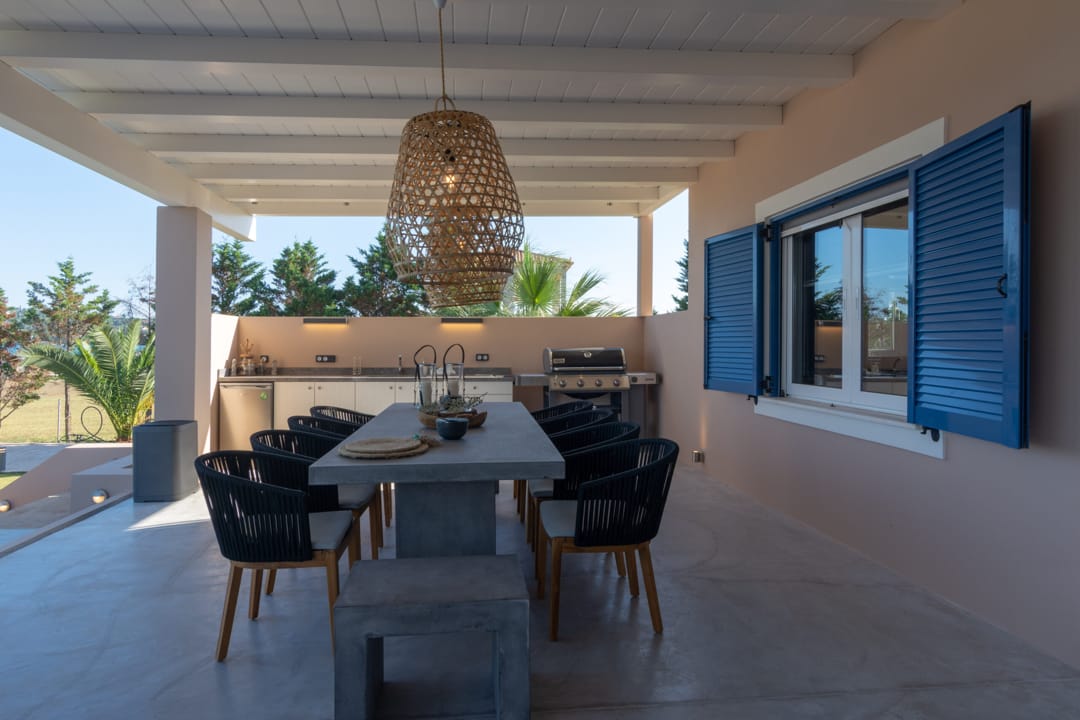 - Огромная веранда с садовой мебелью и видом на сад, бассейн и море
