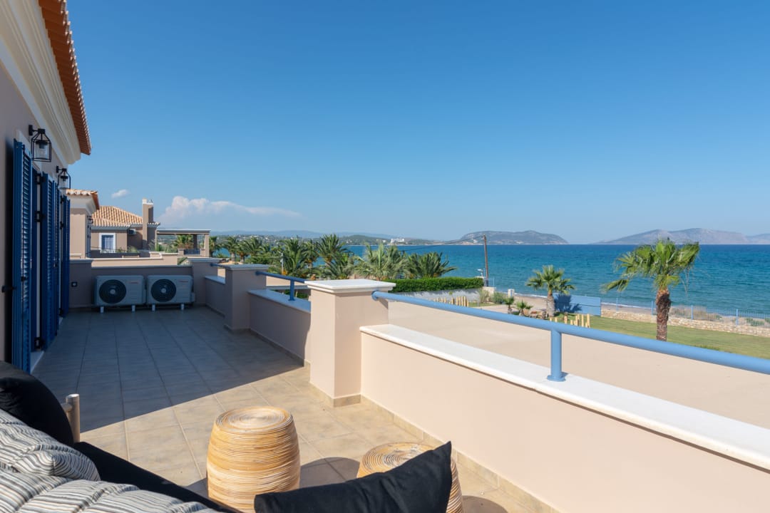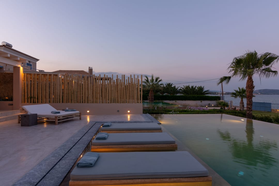 Роскошная новая вилла «Веста» с 6 спальнями и частным бассейном инфинити, расположенная на самом берегу моря рядом с городком Порто Хели, на полуострове Пелопоннес, в аренду.