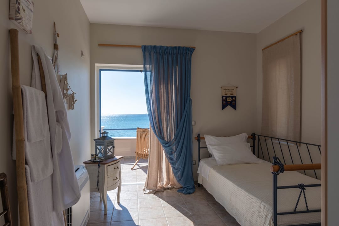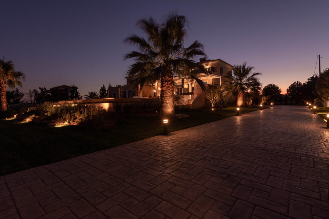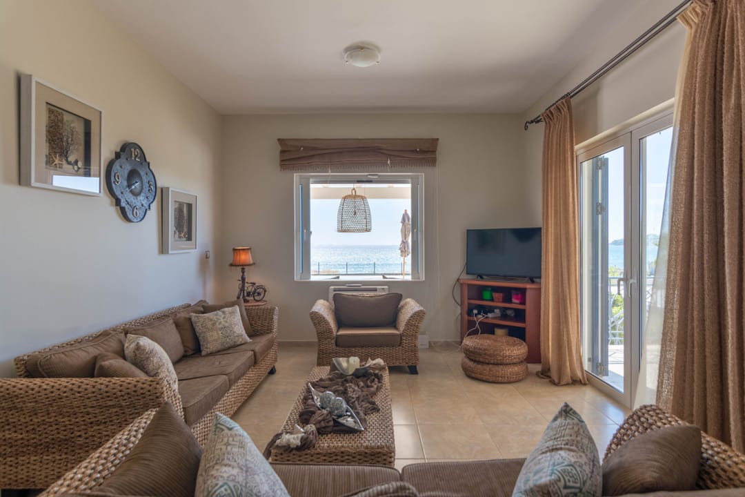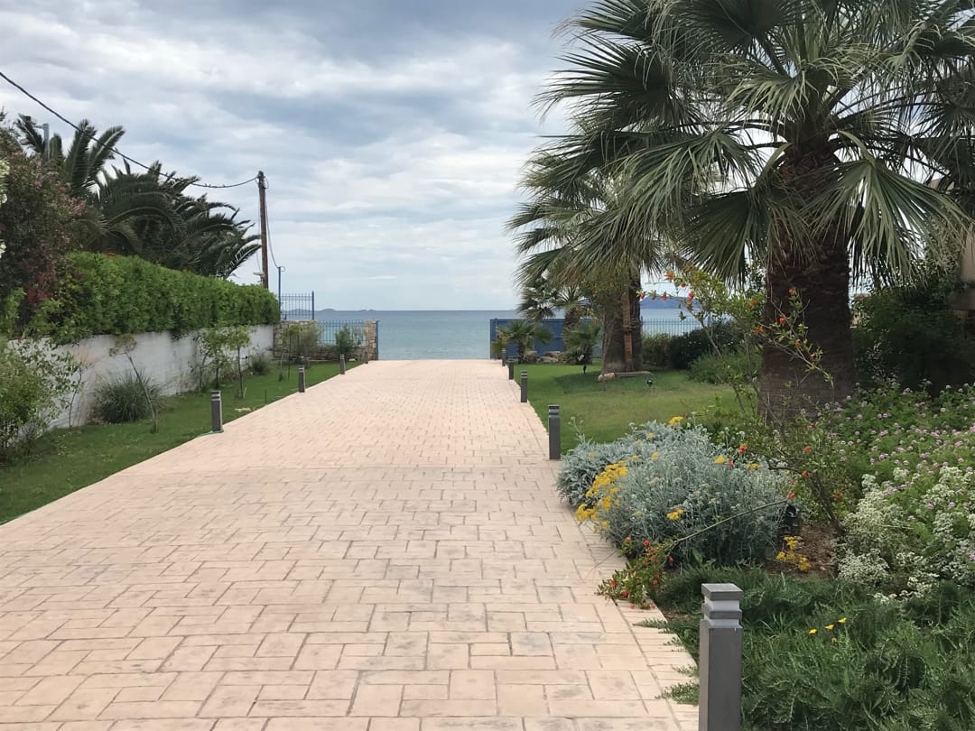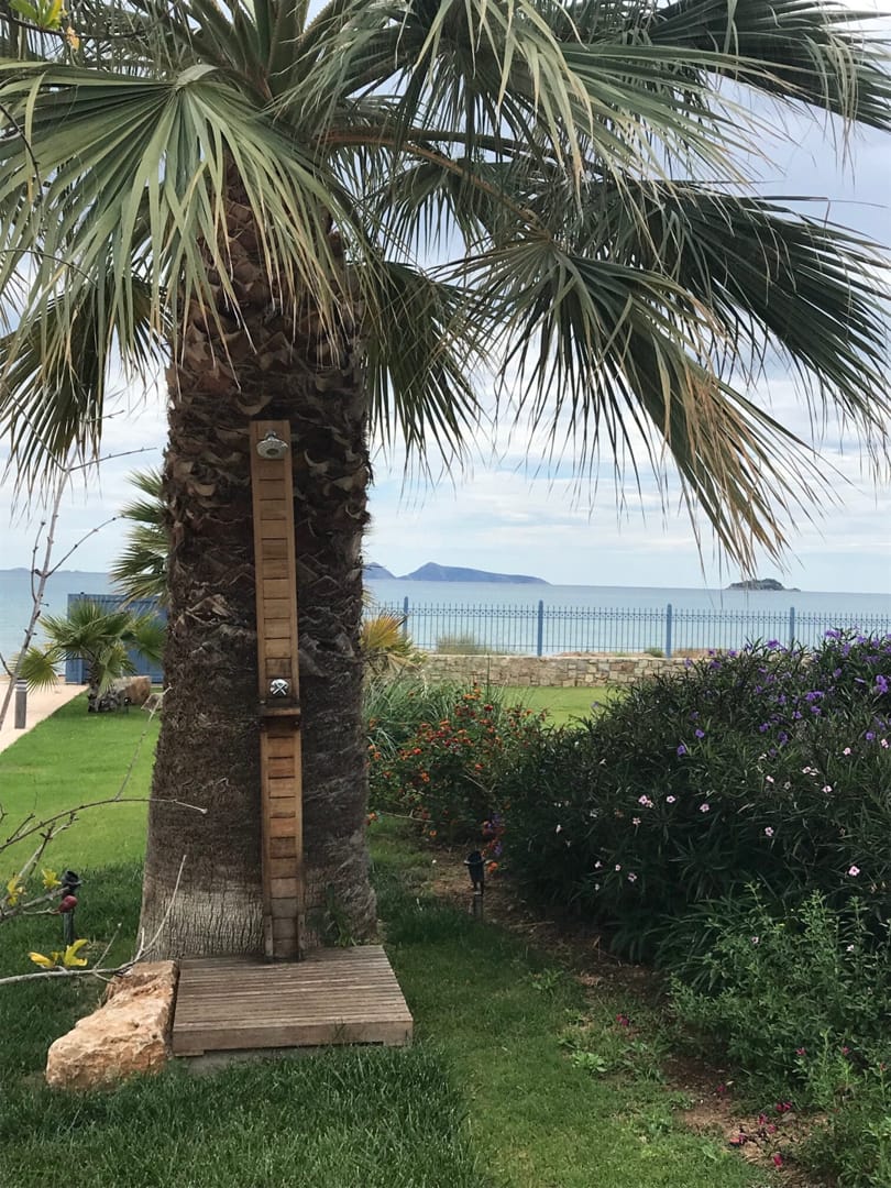 Вилла находится непосредственно на берегу моря, предлагая роскошный и спокойный отдых. Лишь небольшая дорожка отделяет виллу от песчаного пляжа с собственными зонтиками и шезлонгами. Окруженная оливковой рощей и морем, вилла предоставляет гостям живописную обстановку для расслабленного отдыха.