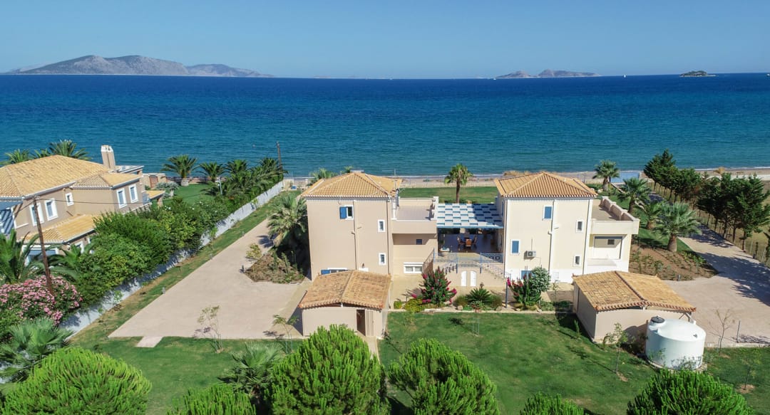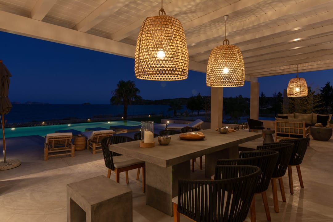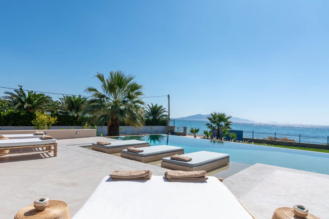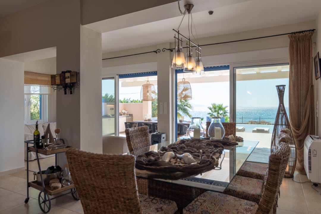 Роскошная вилла «Виста» с 7 спальнями и частным бассейном инфинити, расположенная на самом берегу моря рядом с городком Порто Хели, на полуострове Пелопоннес, в аренду.